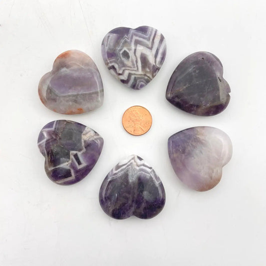 Chevron Amethyst Polished Crystal Heart [palm stone]