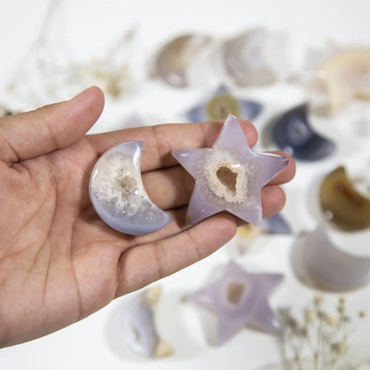 Natural Agate Druzy Cabochon | Star -or- Moon
