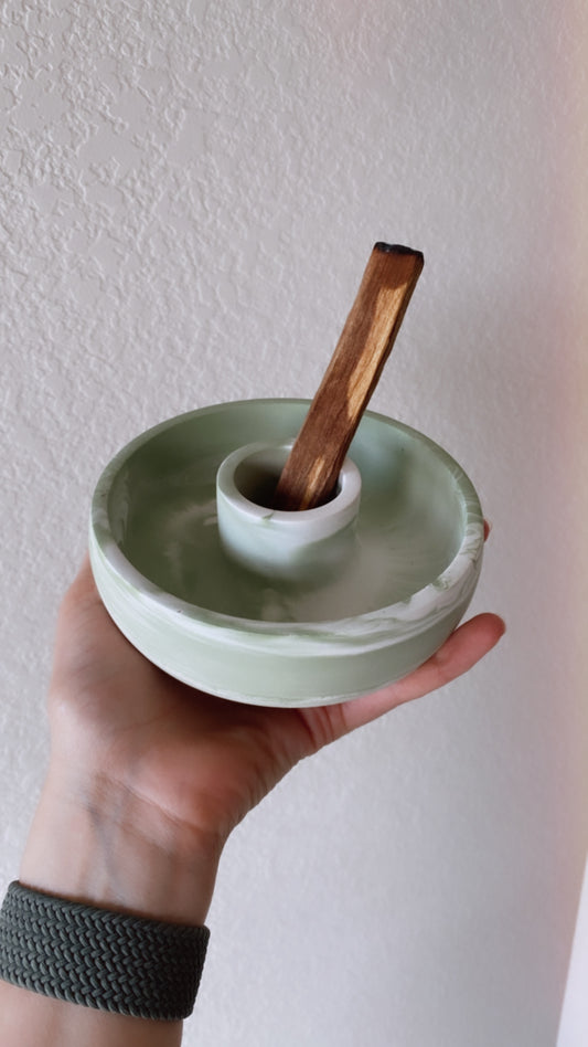 Palo Santo/Smudge Cement Holder - Sage Marble