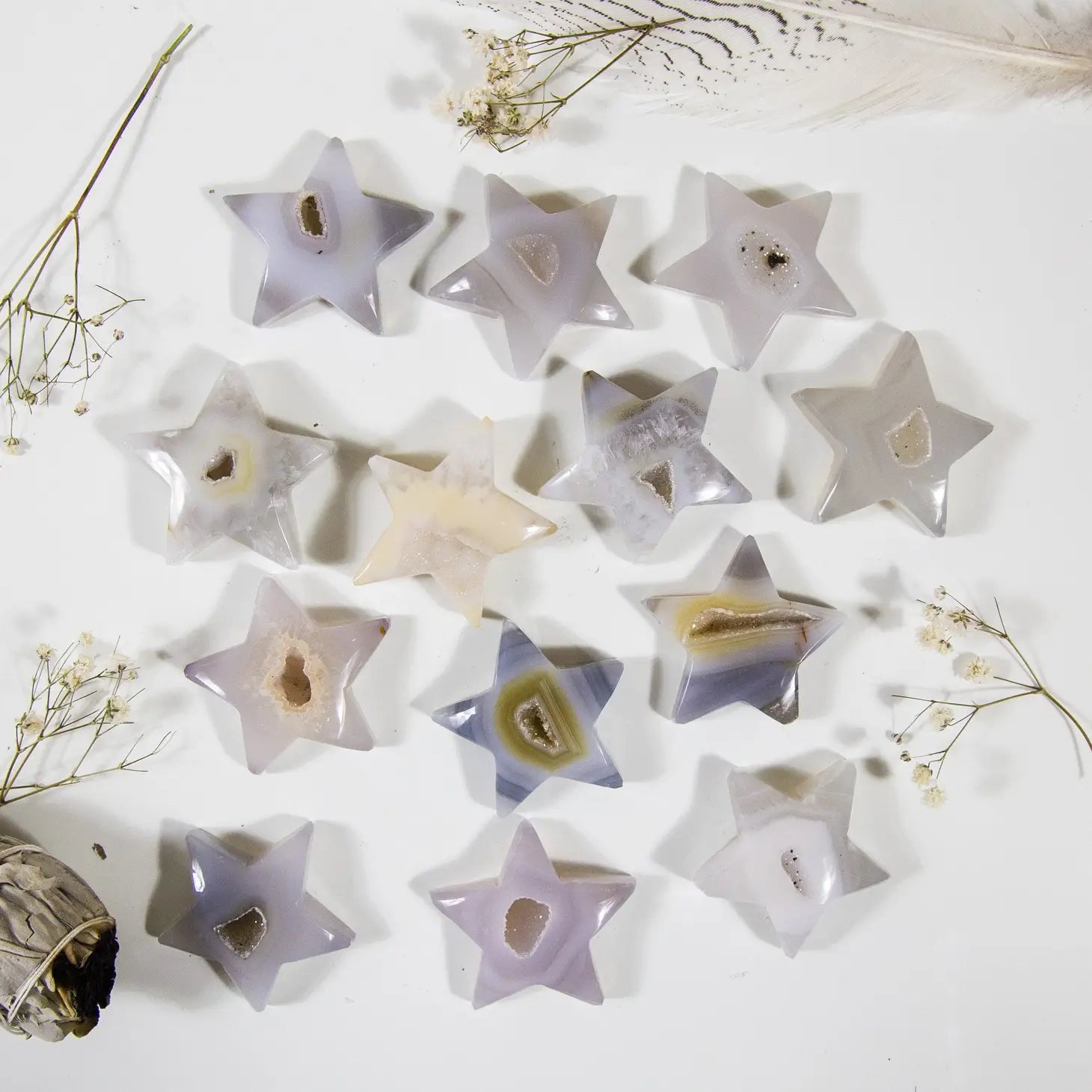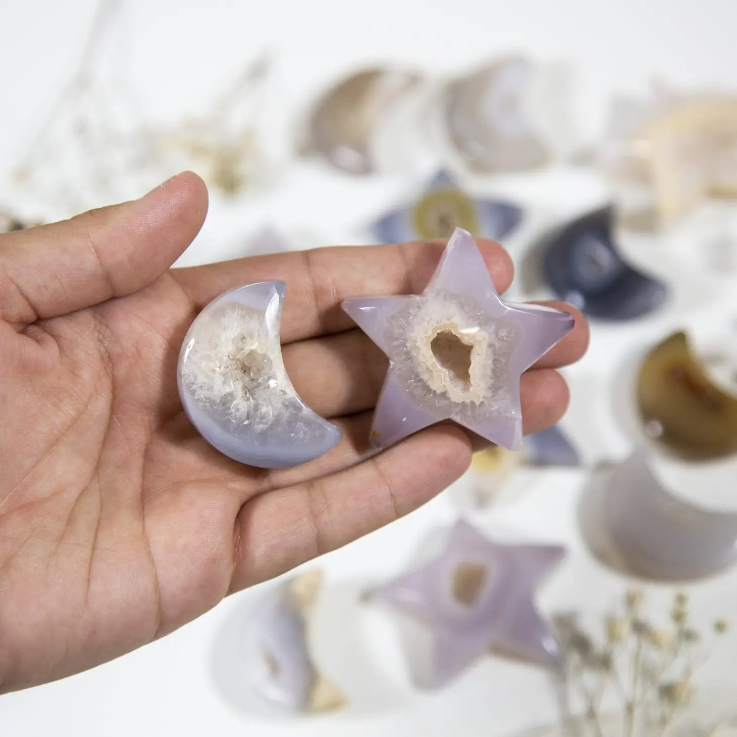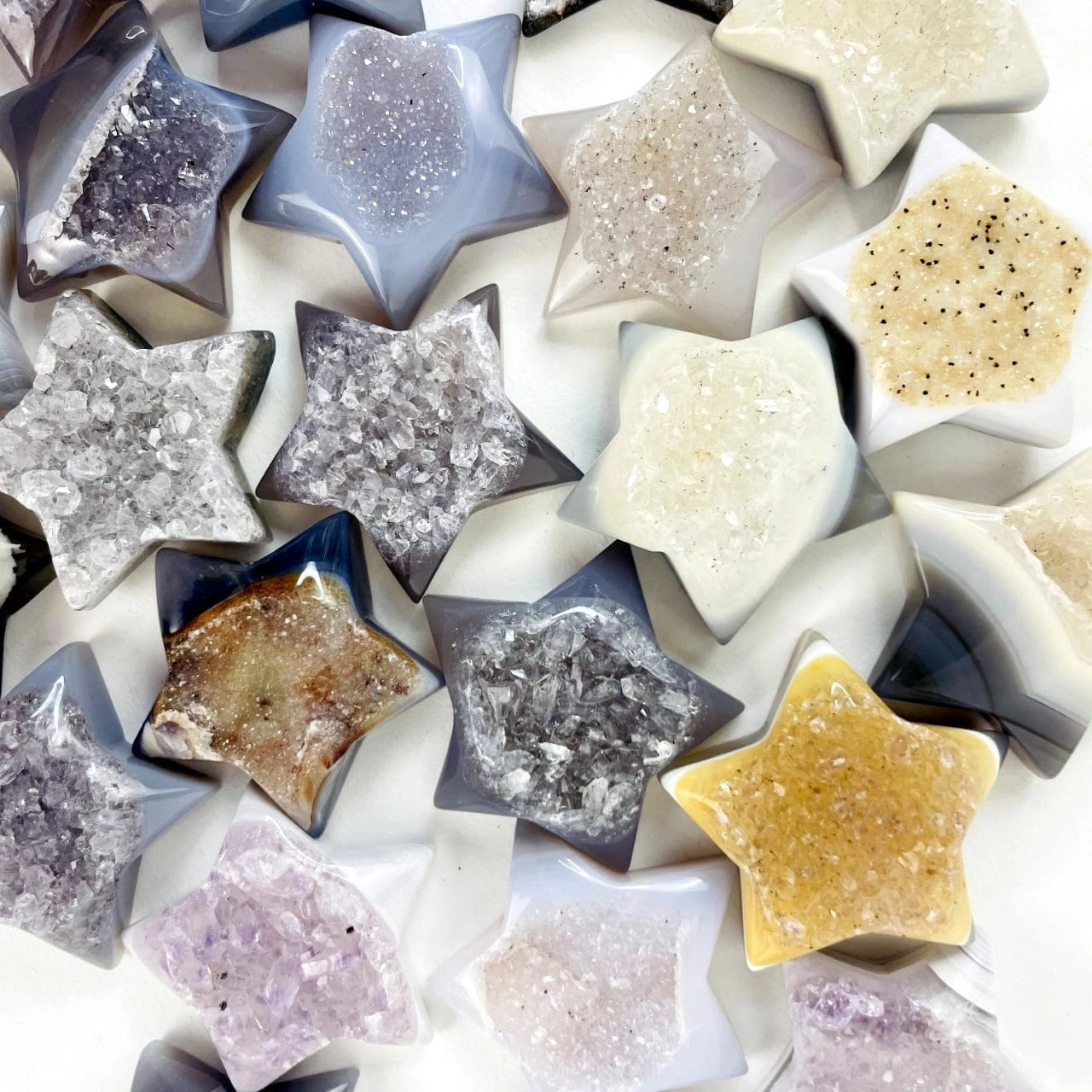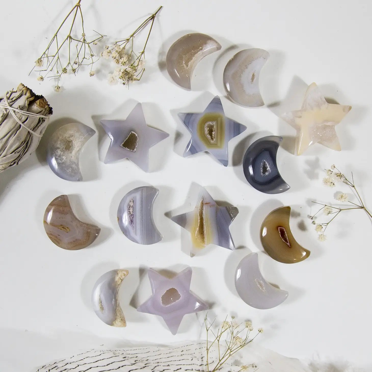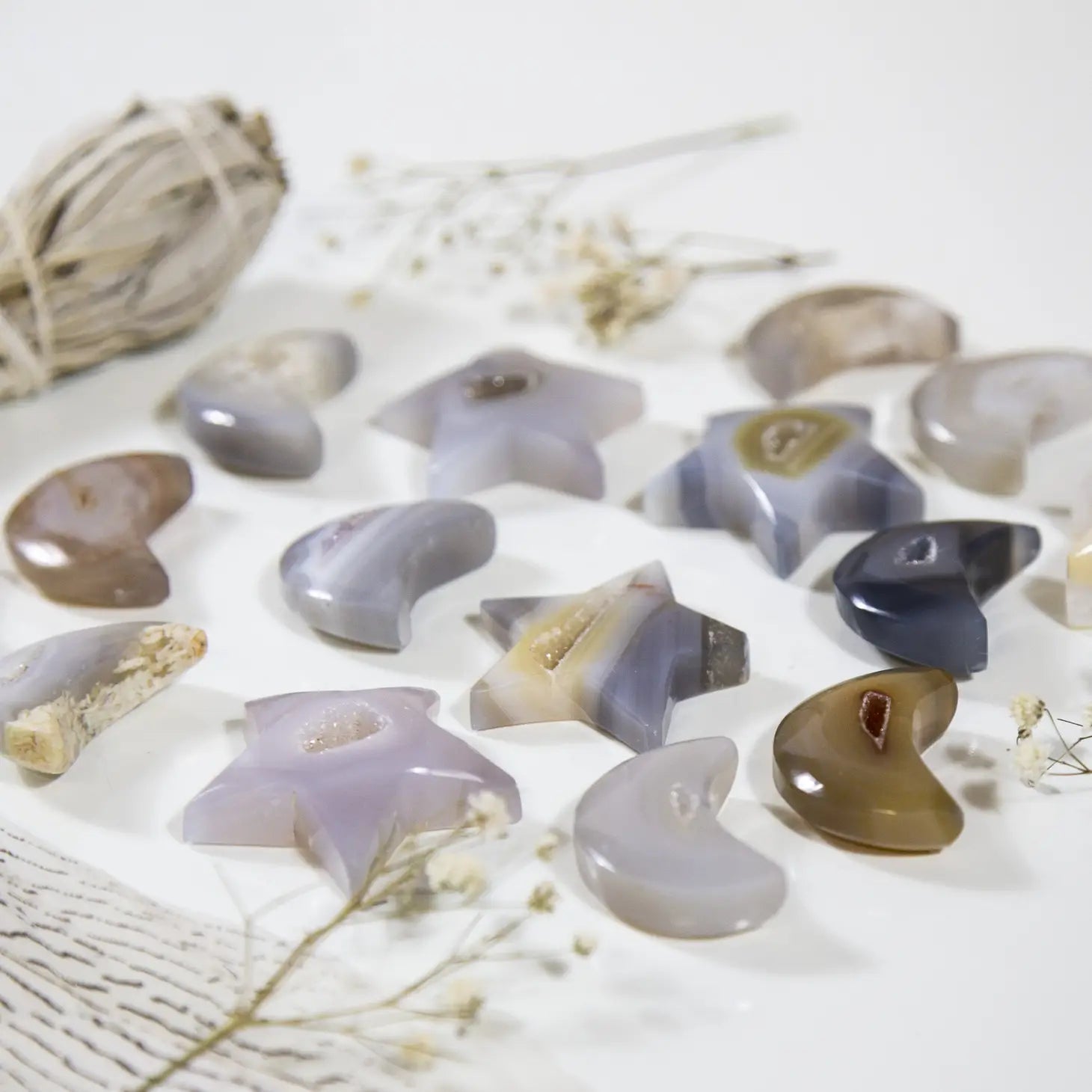 Beautiful and unique star and moon natural agate druzy cabochon crystals. Each one is unique and beautiful.