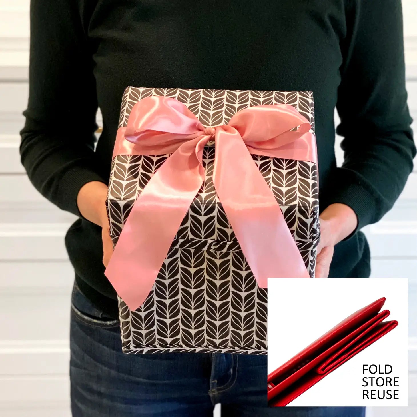 It's the simplest all-in-one solution for reusable gift wrapping. With just the tie of a bow, this standout gift is wrapped! Together we can decrease our wrapping paper and single use gift box waste and use the EverBox for beautiful presents.