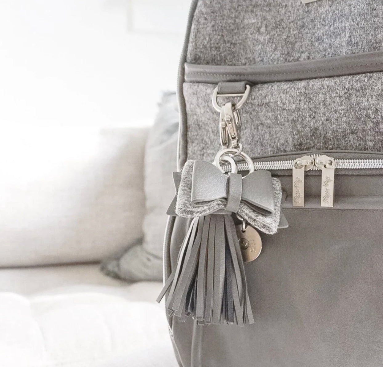 Add an adorable finishing touch to your diaper bag, backpack, purse or keys with the Itzy Ritzy Boss Bow charm. This sweet bow charm and keychain elevates your charm game and effortlessly clips to the bag or keyring of your choosing with a convenient lobster clasp.