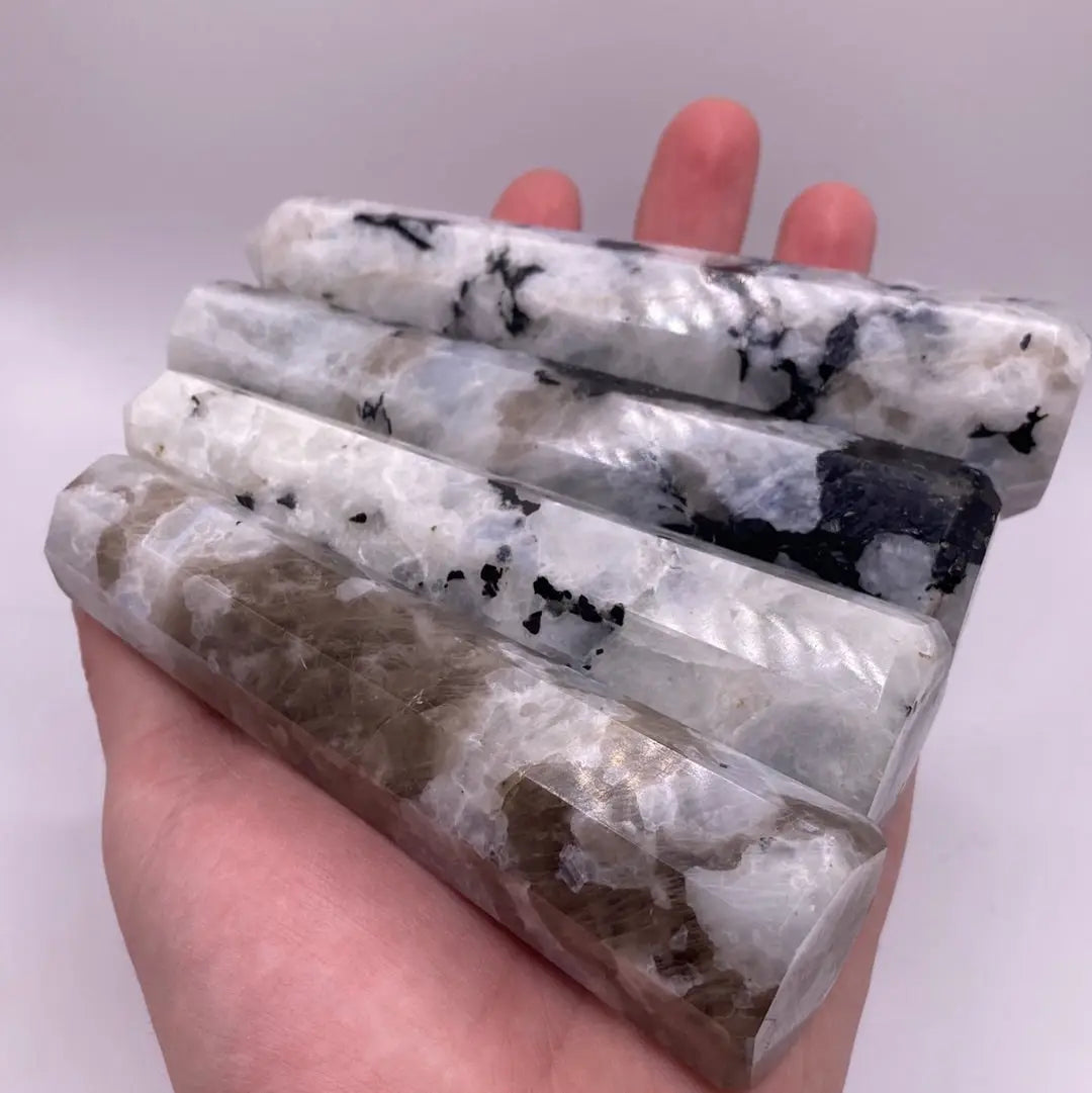 The energy of moonstone is balancing, introspective, reflective, and lunar. It is capable of helping one with the changing structures of ones life on the physical, emotional, mental, and spiritual levels. The energy relates to "new beginnings", allowing one to realize that these "new beginnings" are, in actuality, the fruition of each "end".