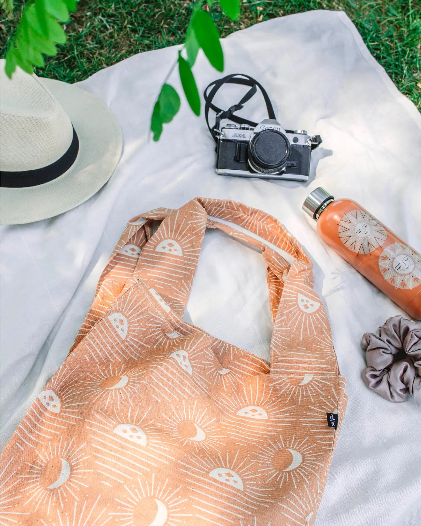 To and fro, wherever the path goes, our extra-wide handled To & Fro Totes make your load easier to carry. On the surface, organic prints created by our designers in the Vancouver studio play off soft cotton twill in a genuine display of character. Inside, a softly structured square shape broadens by the occasion to fit less or more, looking composed even when full. Both style and environmentally conscious, these totes are washable and reusable for your next quick errand or day trip.