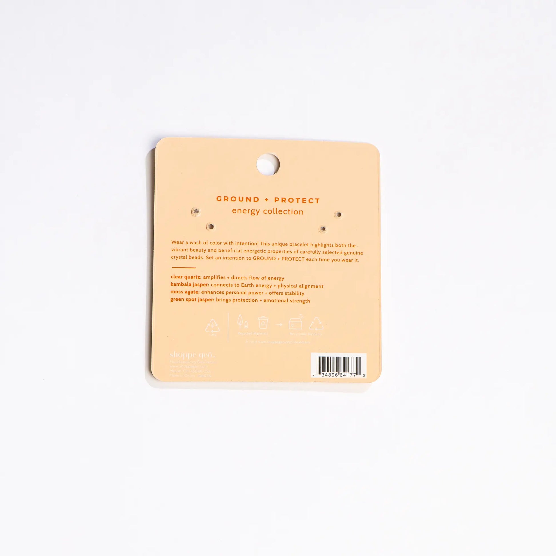 Wear a wash of color with intention! This unique bracelet highlights both the vibrant beauty and beneficial energetic properties of carefully selected genuine crystal beads. Set an intention to Ground + Protect each time you wear it.