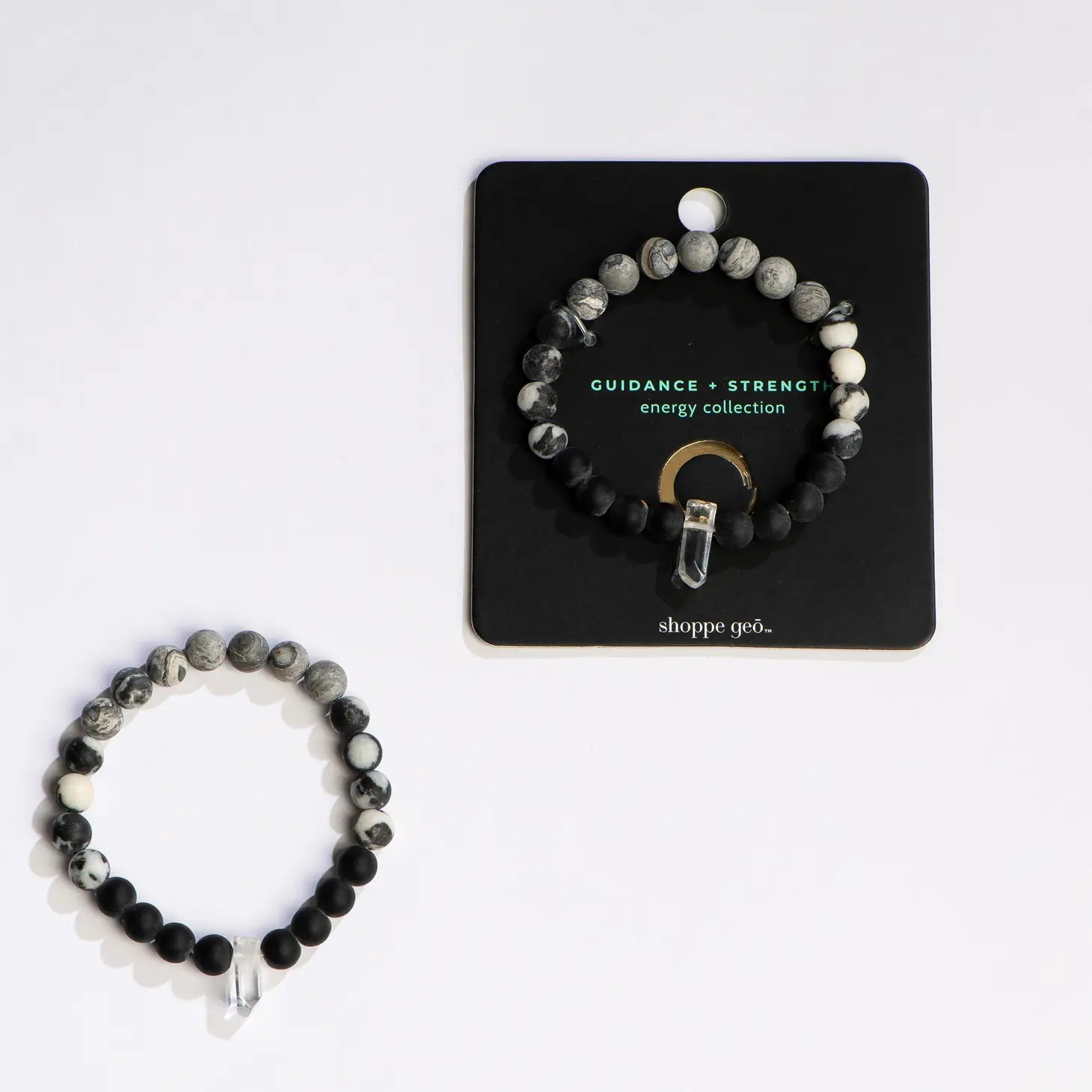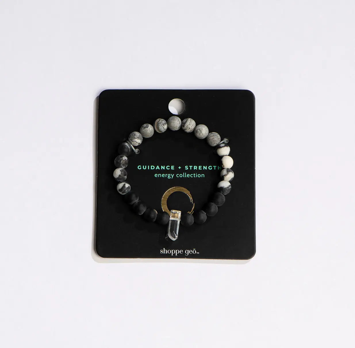 Wear a wash of color with intention! This unique bracelet highlights both the vibrant beauty and beneficial energetic properties of carefully selected genuine crystal beads. Set an intention to Guidance + Strength each time you wear it.
