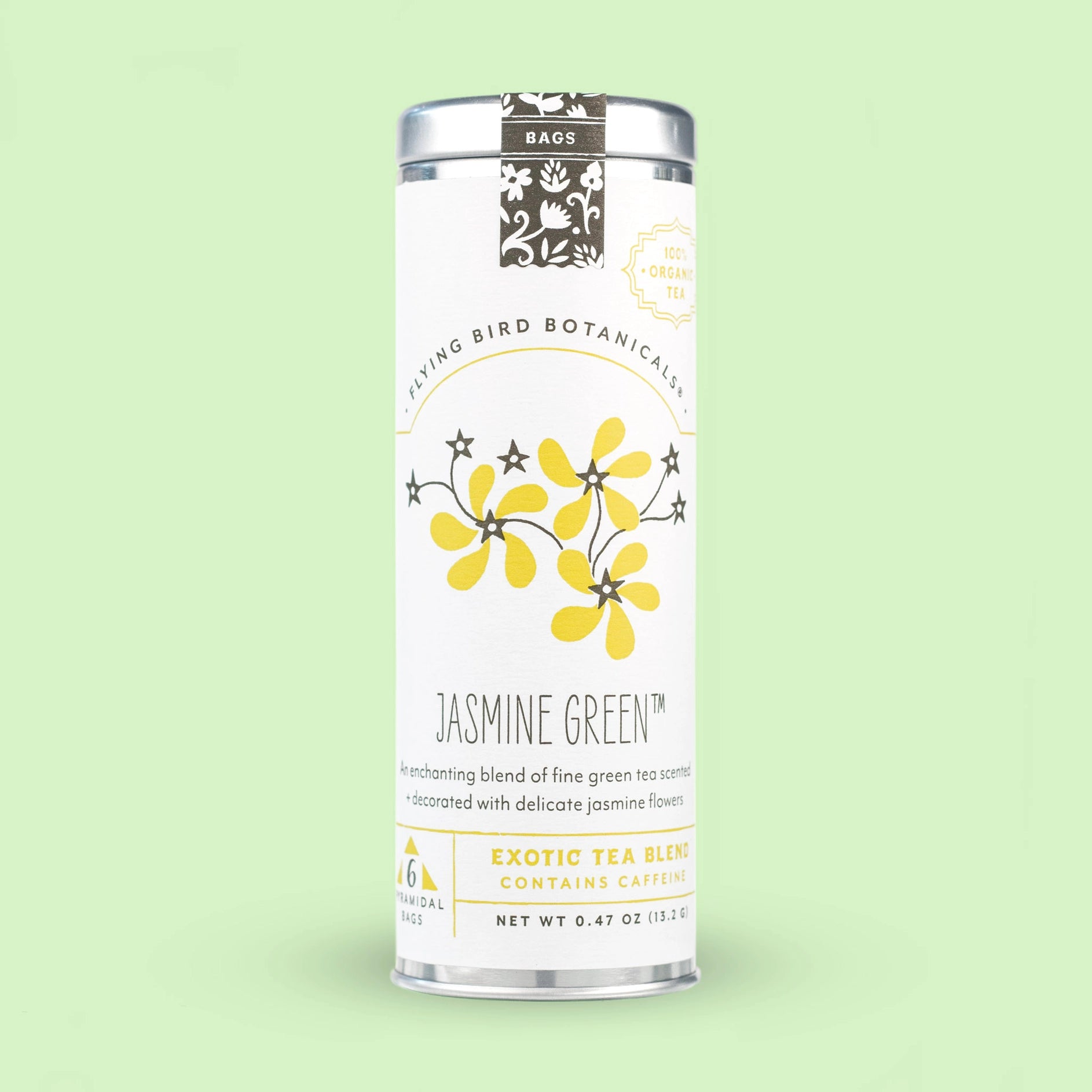 Ingredients: A blend of Fairly Traded Organic Green Tea, Organic Jasmine Flowers