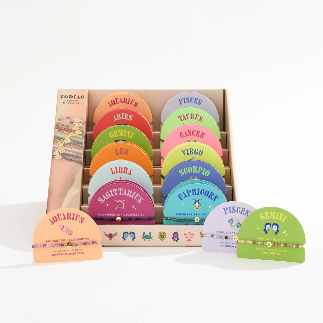 A bracelet for every zodiac sign! Mini Zodiac Bracelets with 4mm beads are perfect for stacking – choose 1, "stack your story" by combining bracelets for your main signs (sun, moon, and rising signs) or the zodiac signs of their favorite people!