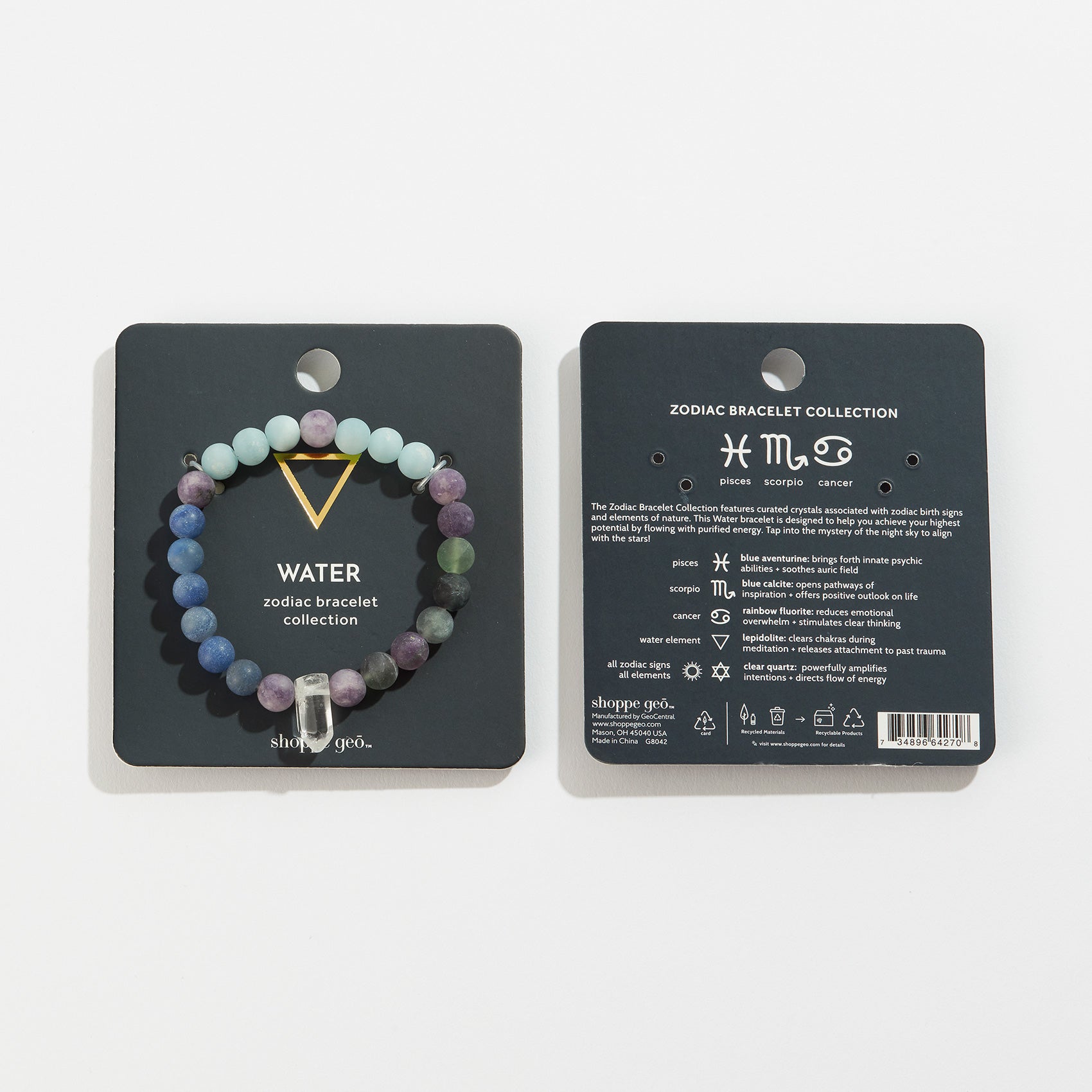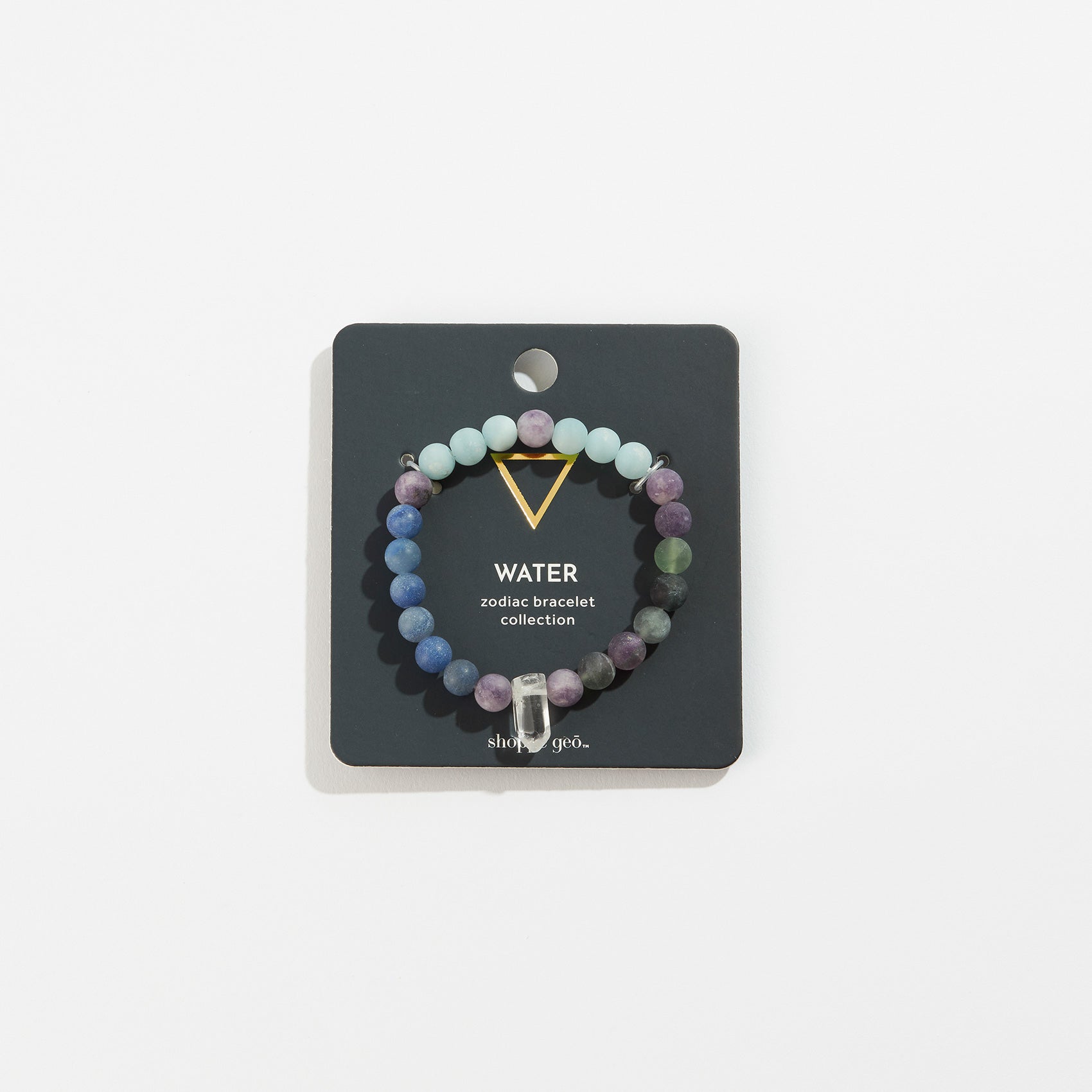 The Zodiac Bracelet Collection features curated crystals associated with zodiac birth signs and elements of nature. This Water bracelet is designed to help you achieve your highest potential by flowing with purified energy. Tap into the mystery of the night sky to align with the stars.